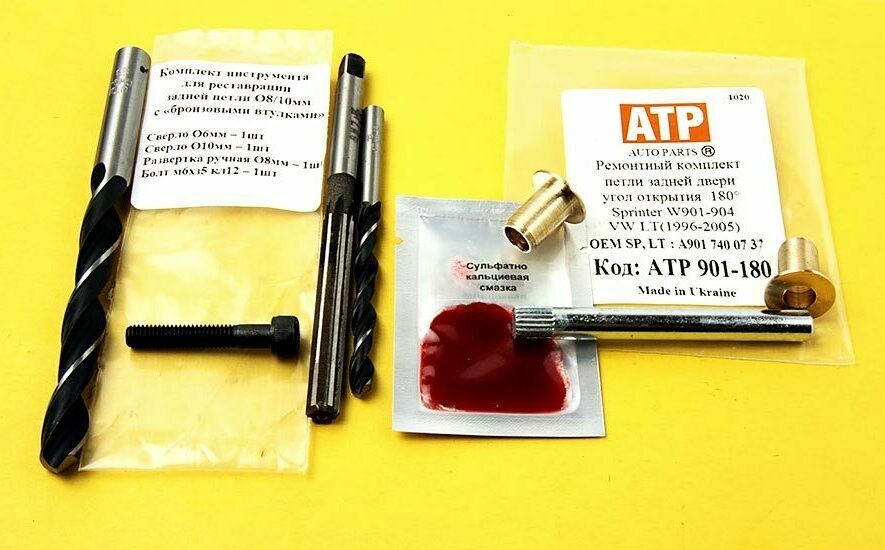 Для решения проблемы восстановления нормальной работоспособности петель распашных на 180 градусов задних дверей Mercedes Sprinter 901-904 и 906, а также Volkswagen LT и Crafter инженеры компании АТР создали специальные ремкомплекты.