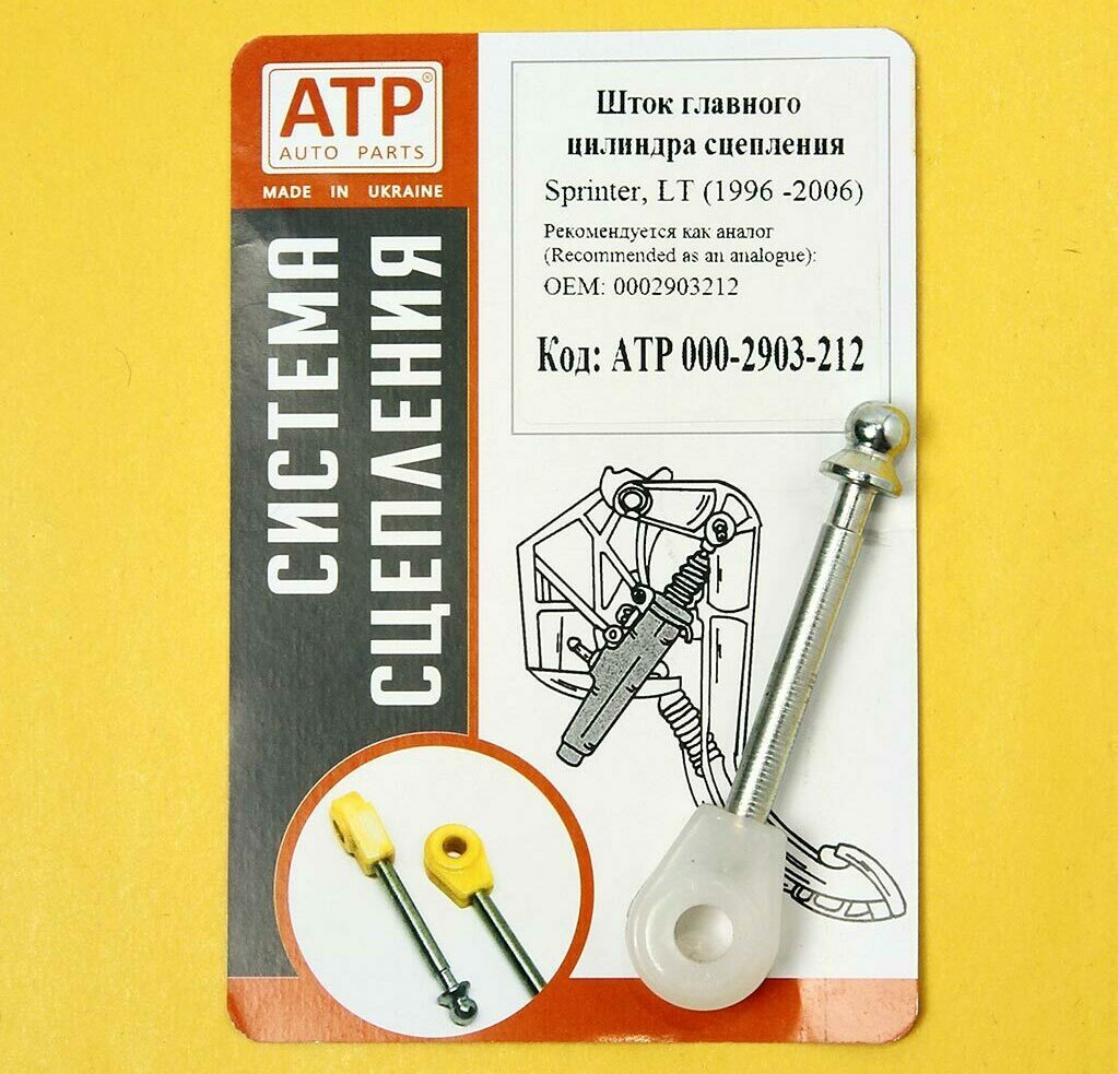 Шток у цилиндра сцепления моделей МВ Sprinter, Vito 638 и Volkswagen LT (оригинальный номер 0002903212) является самой изнашиваемой частью. Все остальные детали этого узла служат больше, поэтому менять цилиндр сцепления в собранном виде не целесообразно, но при этом найти шток цилиндра как отдельную запчасть до недавнего времени было практически невозможно. Решили данную проблему инженеры компании АТР, создавшие ремонтный шток цилиндра сцепления. Эта деталь имеет размеры оригинальной детали, поэтому меняется без будь каких проблем.