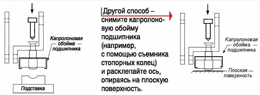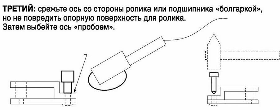 2. Демонтаж старых роликов и подшипника можно произвести тремя способами: