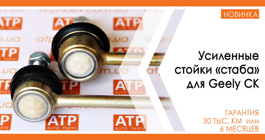 Благодаря этому новшеству, владельцам этих китайских моделей уже не нужно будет каждые 5-10 тыс. км менять китайские стойки стабилизаторов. Гарантия на усиленные стойки стабилизатора АТР для Geely CK и Geely CK-2 составляет 30 тыс. км или 6 месяцев.